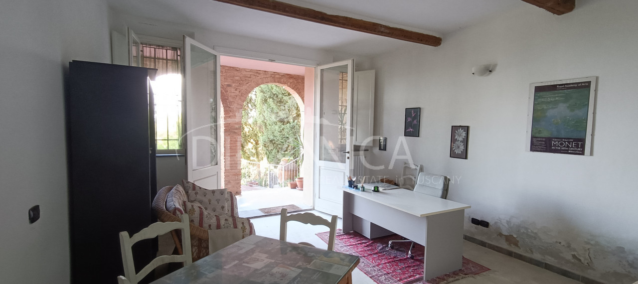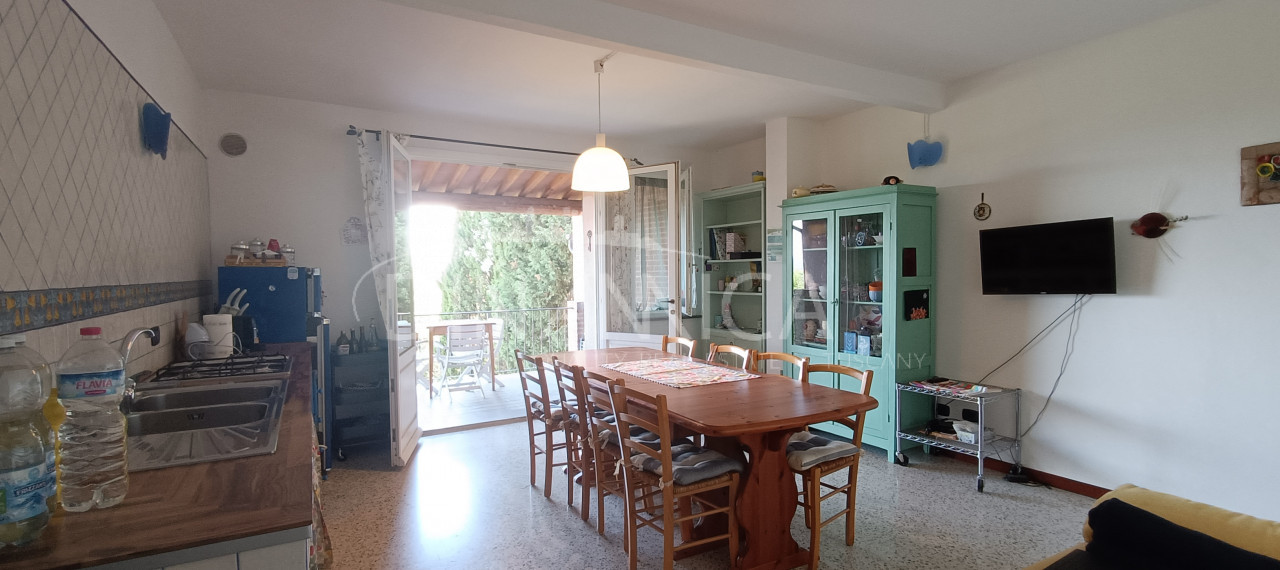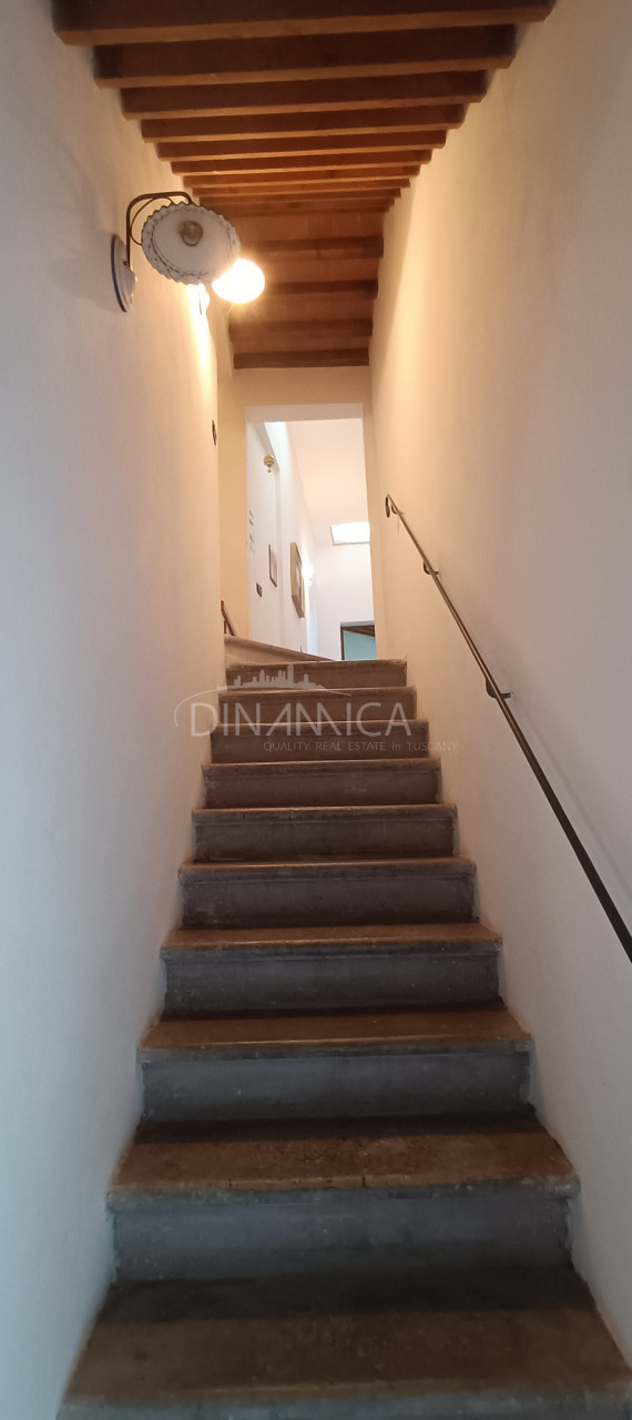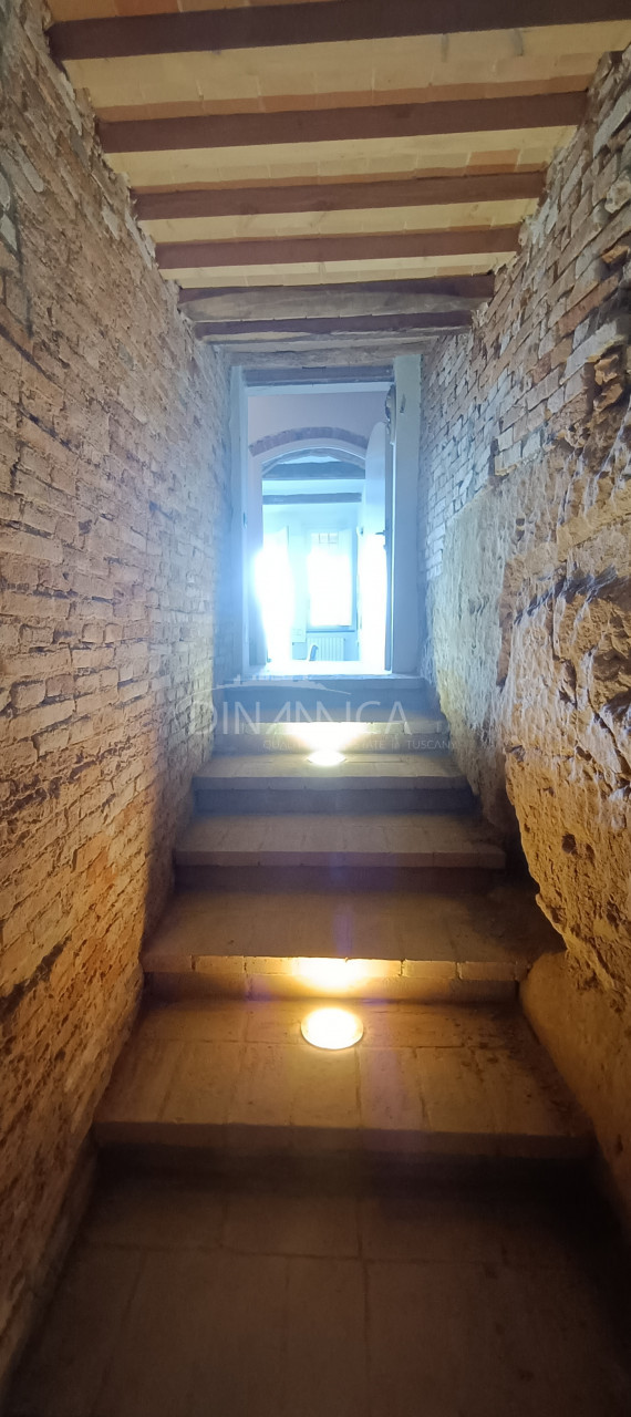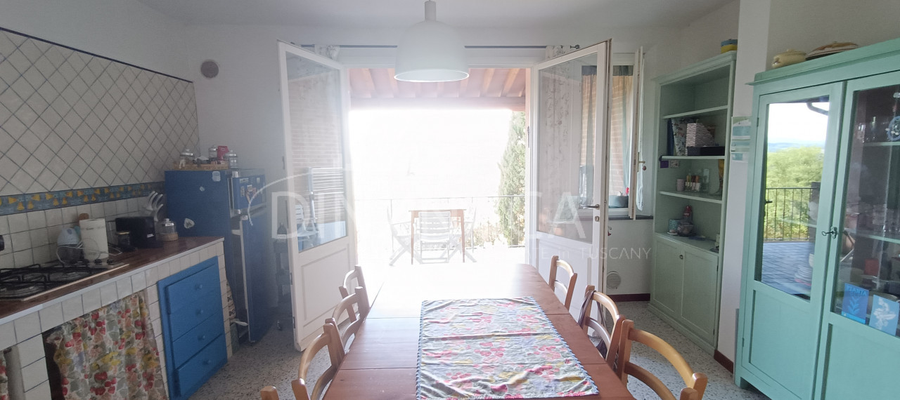 Vi si accede tramite il portone principale di proprietà al piano terra e l'ingresso ci conduce nell'ampia cucina con ripostiglio, bagno e con una piccola loggia da cui possiamo godere di un meraviglioso panorama sulle colline circostanti.