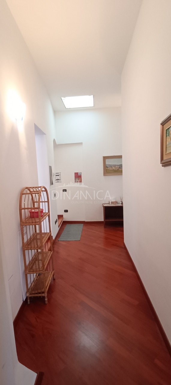 Risalendo al piano terra, la scala interna, dall'ingresso principale, ci conduce al piano primo dove troviamo un disimpegno notte, bagno, n°4 camere di cui una con altro bagno e soppalco.